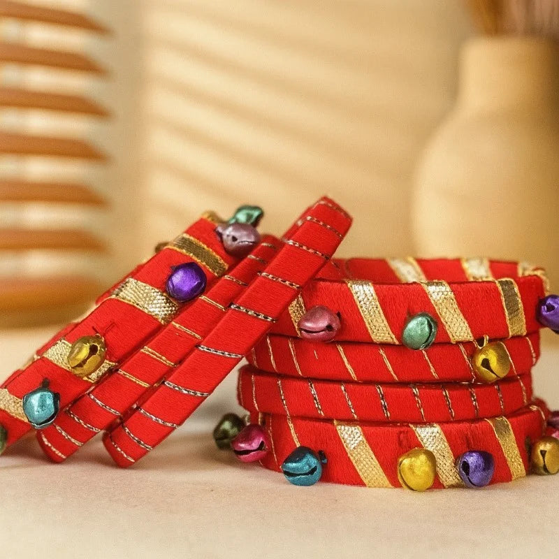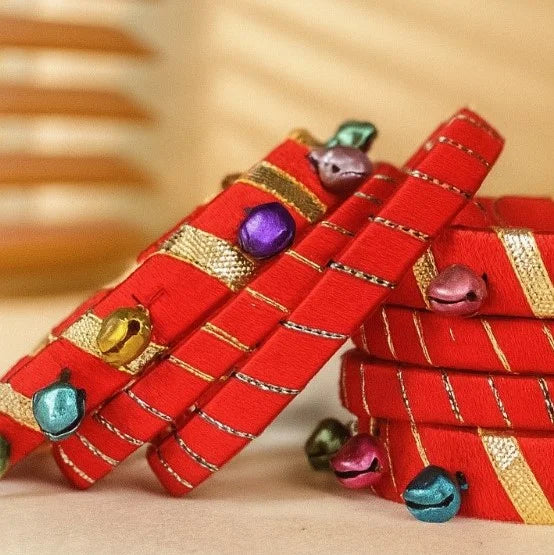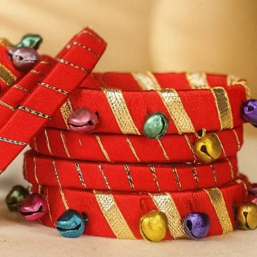 finished with tiny multicolored ghungroos. They